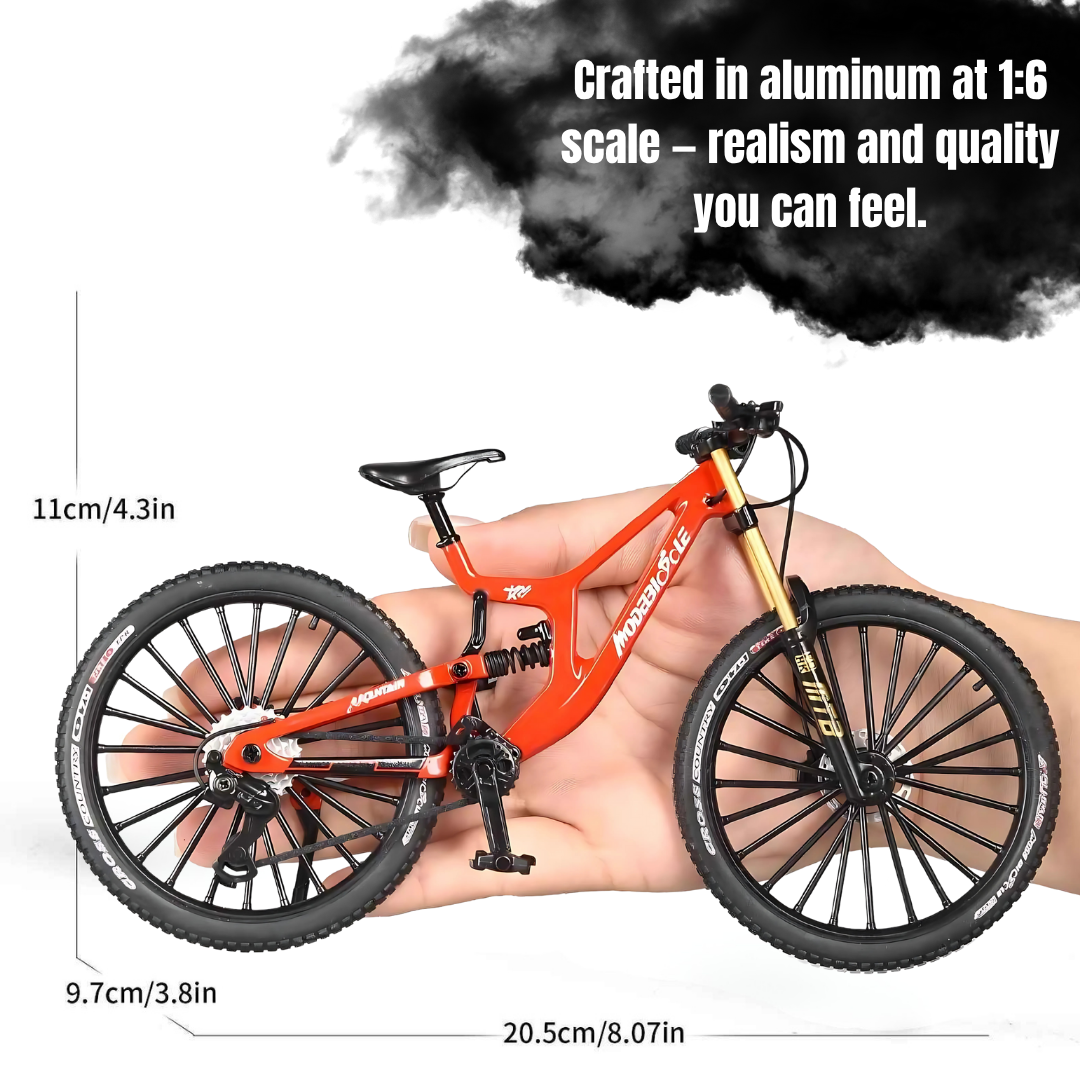 Designed to replicate real bike mechanics — with a pedal-powered drivetrain and working suspension, it's more than a model; it's engineering at 1:6 scale.